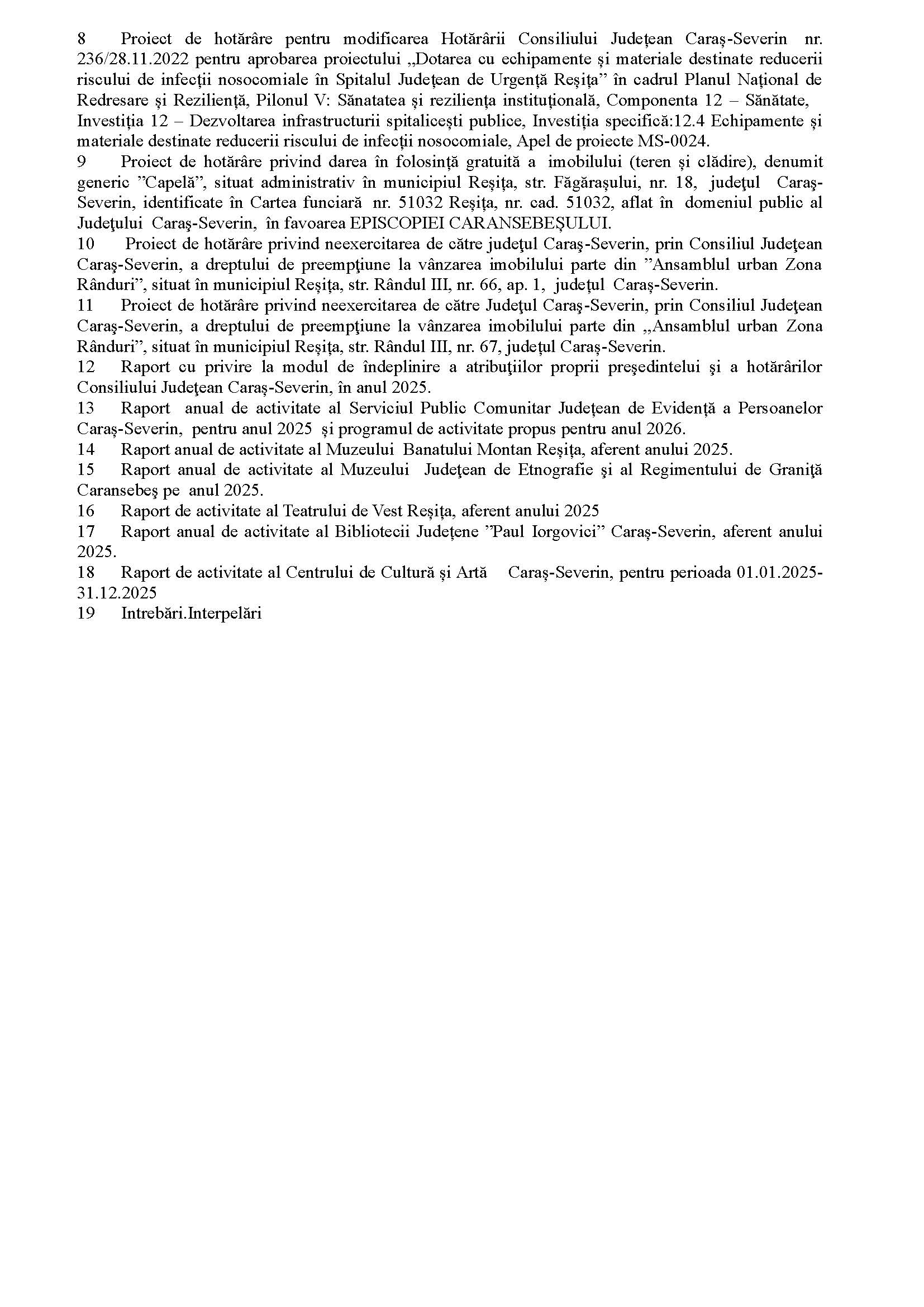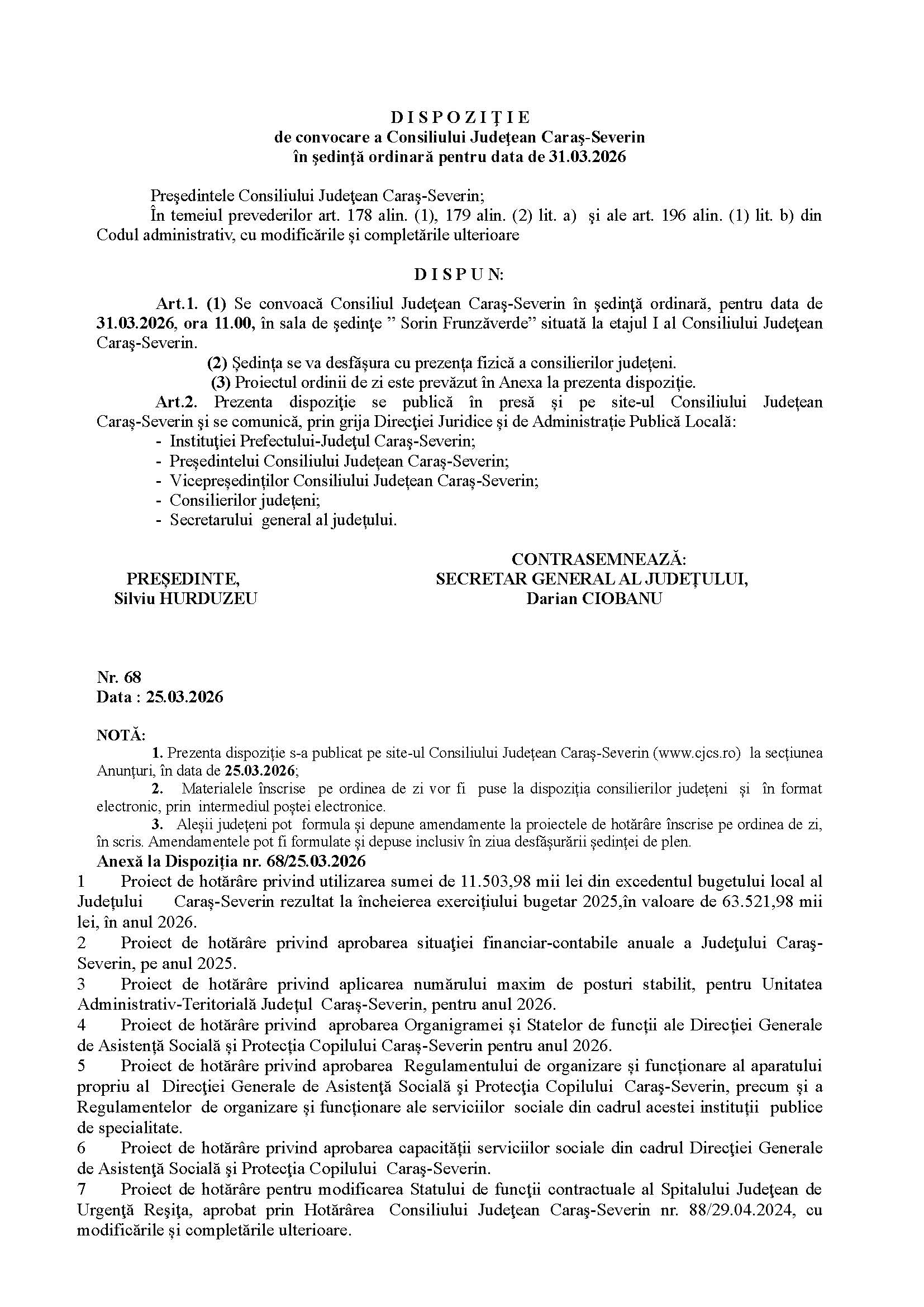 Convocarea Consiliului Judeţean Caraş-Severin pentru data de 31.03.2026